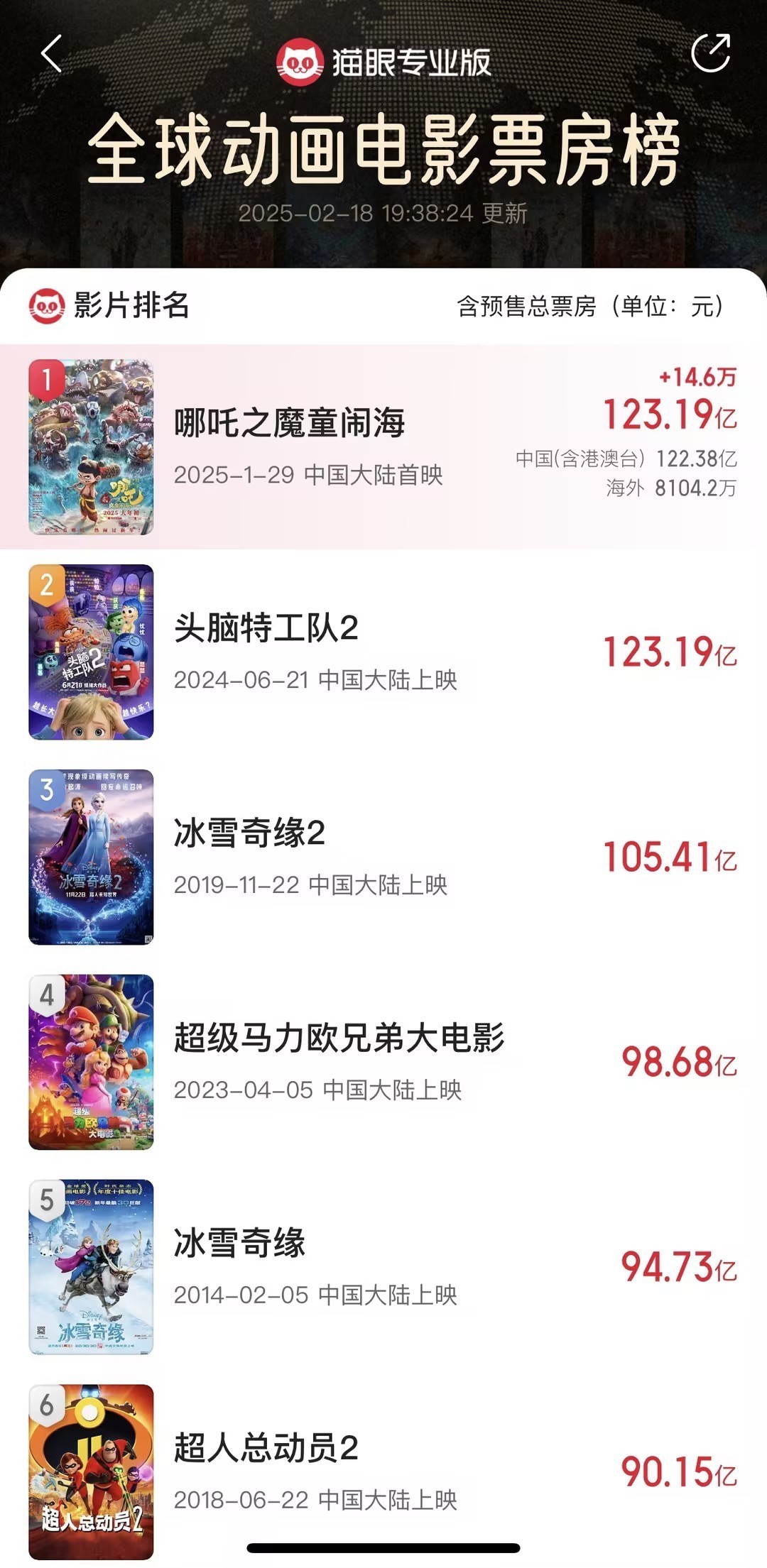全球动画电影票房NO.1 《哪吒2》再创纪录!